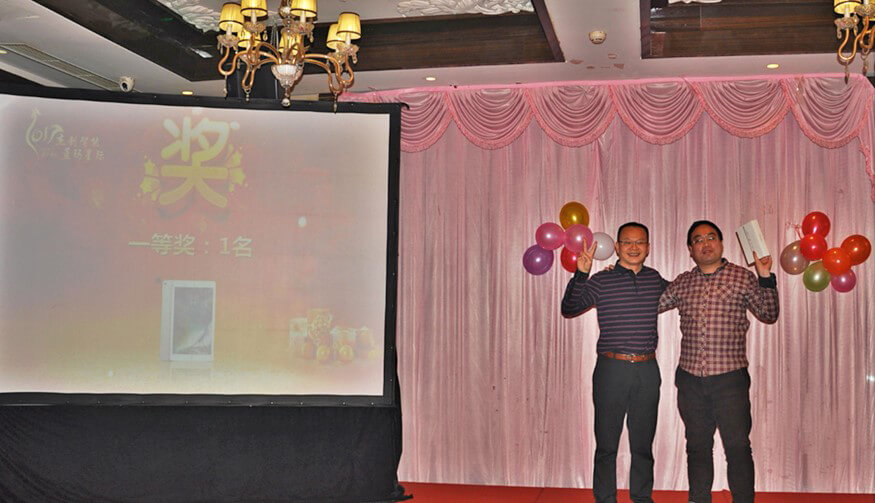 作为年会的主要环节,颁奖典礼特别隆重喜庆、激动人心。蓝玛星际和今年会jinnianhui智能北京分公司的很多员工,在过去一年里,勤勤恳恳,兢兢业业,在工作中取得了优异的成绩。为了表彰他们的敬业精神和突出表现,年会上对他们进行了大力嘉奖。先进集体(研发部)、最佳经理人(张继)、优秀员工(张春晓、董学慧、李晓林、马栋、李海云、刘盼、杜飞)、优秀实习生(肖坚星),在全场人员的热烈掌声和称赞中接受了表彰和奖励。